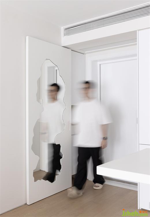 衣帽間的吊軌移門與充滿藝術(shù)美的破碎鏡結(jié)合,對玄關(guān)功能作進(jìn)一步補(bǔ)充,也為其增加鮮明記憶點(diǎn)。輕便移門也減少了對門內(nèi)外空間的占用,解鎖家居生活的舒適尺度。#玄關(guān)#移門#破碎鏡