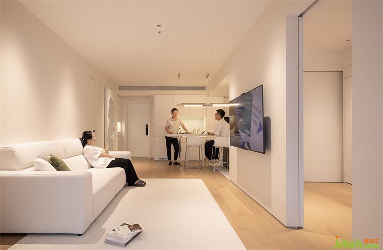 極簡并不意味著空洞蒼白,客廳聚焦空間細(xì)節(jié)處理和材質(zhì)的運(yùn)用,與沙發(fā)同側(cè)的主臥,采用用隱形門,開辟出主臥、進(jìn)門衣帽間的交互洄游動線,一并聯(lián)動玄關(guān)與客廳,令小家更添生趣。#客廳#隱形門#洄游動線