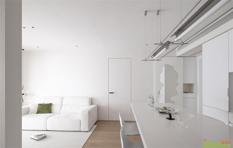 “我的夢中情屋是干凈清爽的,還要有間寬敞的主臥和大大的衣帽間?!蔽葜髟谙蛭覀冩告傅纴硇录业男枨髸r,這樣說道。結(jié)合屋主的個性,我們以極簡純白的形式表現(xiàn)家的外在風(fēng)格,并加入靈魂元素的暖調(diào)燈光,讓家在純粹無暇與溫暖舒適間來回切換。