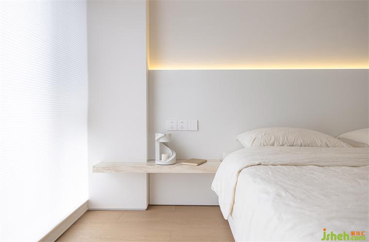 床頭背板同樣內(nèi)置燈帶,開燈后頓覺溫馨感,懸挑的天然白洞石床頭柜,家裝設(shè)計將左側(cè)墻垛與床頭背板整合,支持隨手置物,又減少了對床頭采光的遮擋。#主臥#燈帶#床頭柜