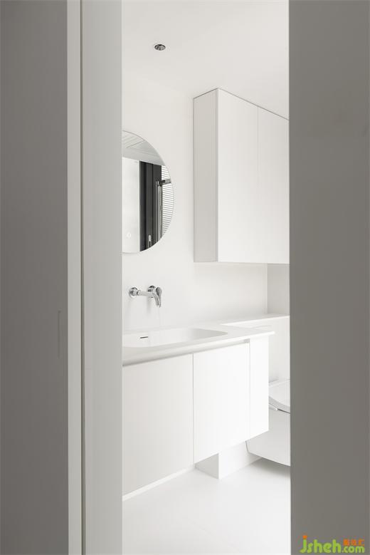衛(wèi)生間是一個完全的純白空間,通透明亮度感人。外掛的吊軌門,為衛(wèi)生間爭取更多使用空間,淋浴房獨立隔斷,改變了原衛(wèi)生間干濕區(qū)混合的尷尬處境,大幅提升了衛(wèi)浴的功用效率。