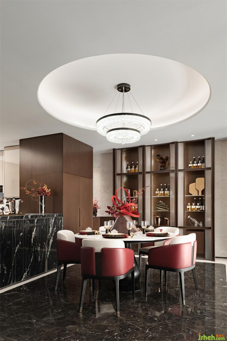 端莊承于禮序,潤雅緣接生活。餐桌上的禮節(jié),蓋因千年流傳而來“民以食為天”的箴言,混合金屬、玻璃、大理石等材質(zhì),人文意蘊(yùn)的細(xì)膩表達(dá),一種現(xiàn)代禮序東方并存的體驗迎面而來,樣板房設(shè)計抒寫生活方式的具象場景。