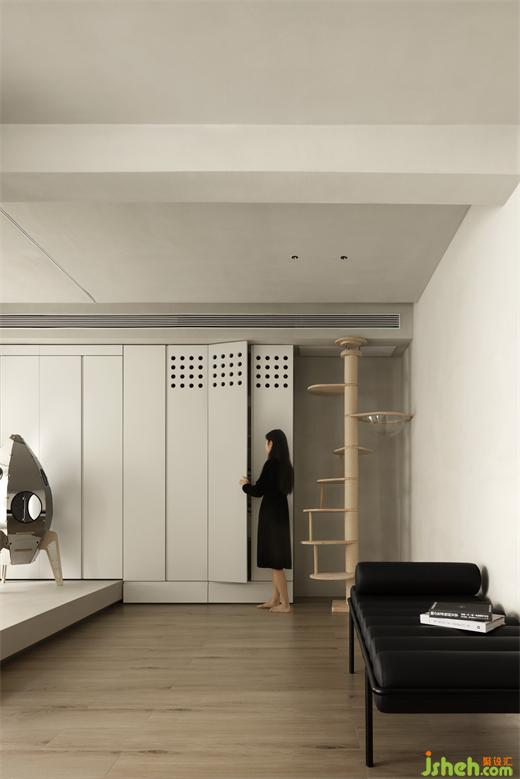 從理性出發(fā)回歸到感性,在利落明快的收納柜注入新的功能可能性,將沉穩(wěn)與靈動結(jié)合,長沙裝修設(shè)計為貓貓留下立體主義的移動空間,予以場域收房有度的活潑感。
