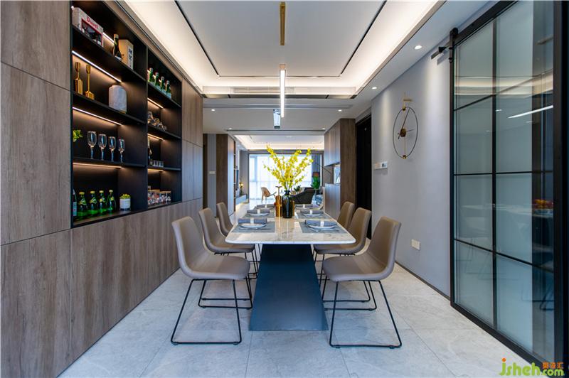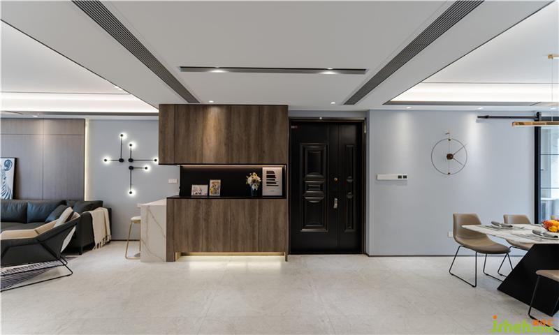 戶型改造上,重點(diǎn)是門廳,改造前由于是帶裝修的精裝房,過道兩側(cè)還帶有屏風(fēng),在一進(jìn)門的時(shí)候會(huì)有壓抑的感覺。在做設(shè)計(jì)改造的時(shí)候決定打掉了一小部分電視背景墻,由于衛(wèi)生間會(huì)對(duì)著大門,在風(fēng)水上是不好的,因此決定直接把墻變成木飾面裝飾墻,而衛(wèi)生門則改成隱形門,在功能上不變,但起到裝飾的作用,一進(jìn)門前廳給人的視覺也寬敞了不少。在主要的客餐廳以及陽臺(tái)空間區(qū)域中,也進(jìn)行了合理劃分,儲(chǔ)物空間合理放置。開放陽臺(tái)改造成封閉陽臺(tái),將原始生活陽臺(tái)和大陽臺(tái)打通,南北對(duì)流,大大增加采光及使用面積??蛷d設(shè)計(jì)了一個(gè)酒吧區(qū)域,業(yè)主夫婦二人熱愛酒文化,而且與進(jìn)門口處的鞋柜做成L型柜,解決了轉(zhuǎn)交位的缺陷;客餐廳一般是人們待著比較長時(shí)間的地方,改造后將大大增加了空間利用率。主要公共區(qū)域完全打通,獲得極致的室內(nèi)空間觀感。而本項(xiàng)目還有一個(gè)改造重點(diǎn),原本帶有三個(gè)衛(wèi)生間,但空間都很小,根據(jù)業(yè)主的需要,因此把主衛(wèi)及公衛(wèi)打通,變成一個(gè)大主衛(wèi),實(shí)用性增大,而且對(duì)門的臥室改成衣帽間,業(yè)主二人擁有屬于自己完完整整的私密空間,減少公共過道區(qū)域,使空間利用得更加極致。