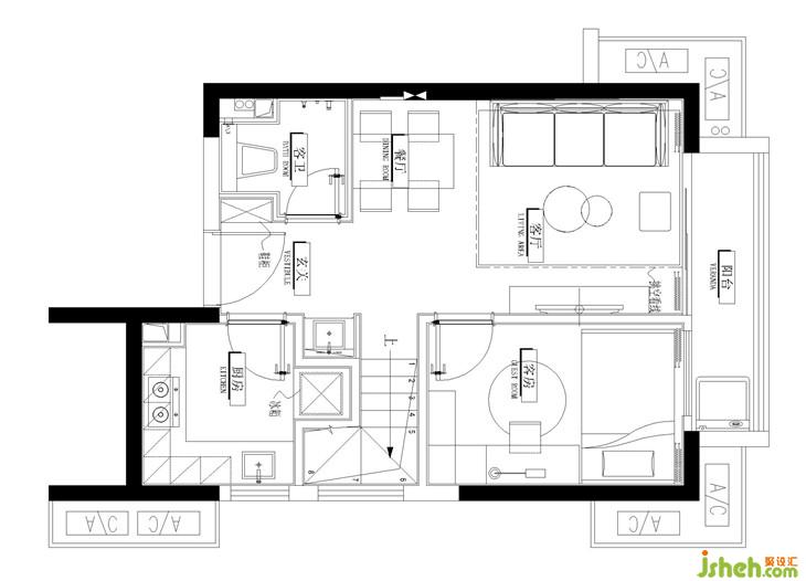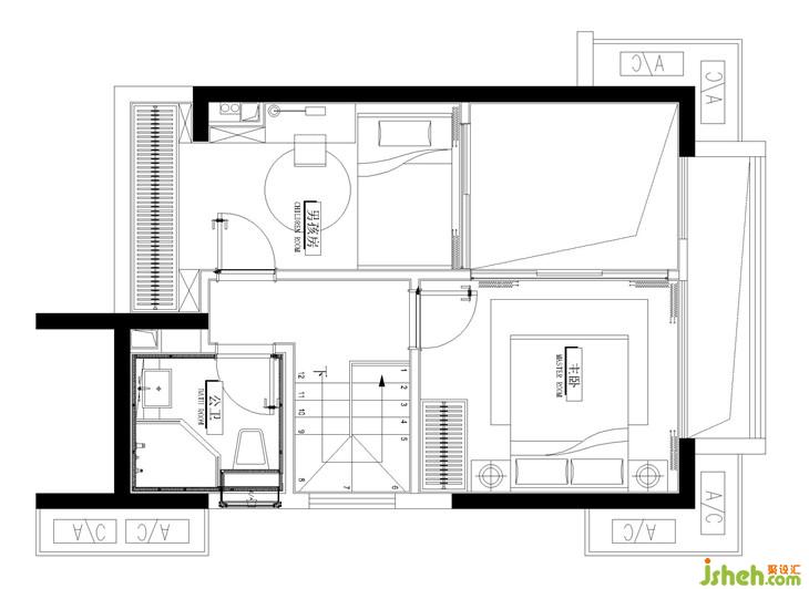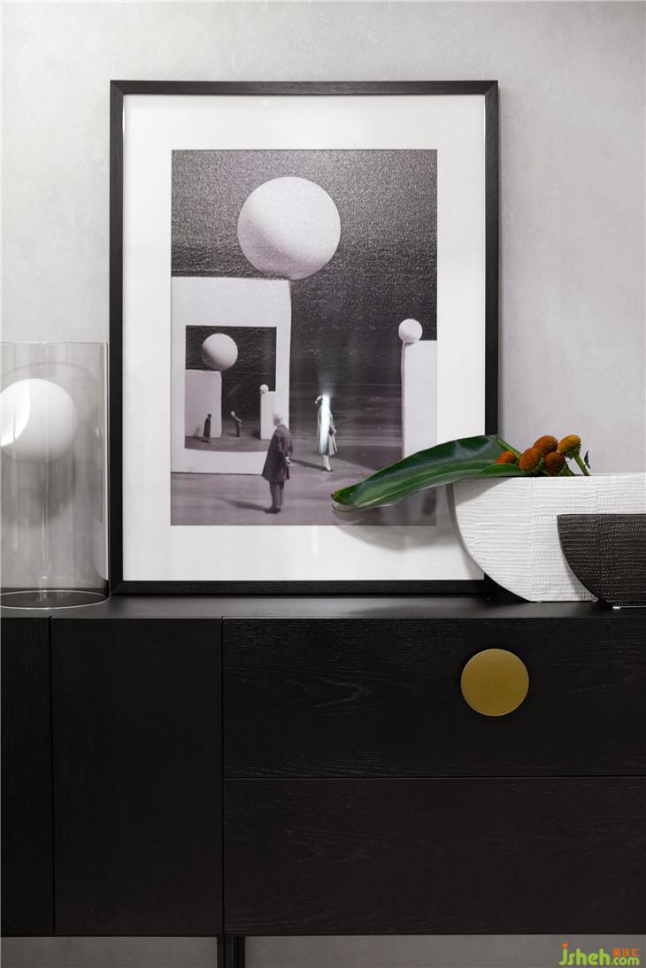 客臥將大色塊與不同紋理的圖案調(diào)和得相得益彰,舒適簡潔。設(shè)計(jì)師把金屬光澤蔓延到了這里,與客廳風(fēng)格遙相呼應(yīng)。