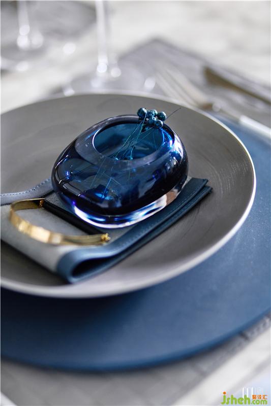 餐廳與客廳貫通而又區(qū)域分明,北歐風(fēng)強(qiáng)調(diào)室內(nèi)的寬敞度,餐廳在設(shè)計(jì)上更多選用灰與藍(lán)這類收縮色,以達(dá)到視覺上的擴(kuò)充,并采用不同飽和度的藍(lán)色增加空間的層次感。