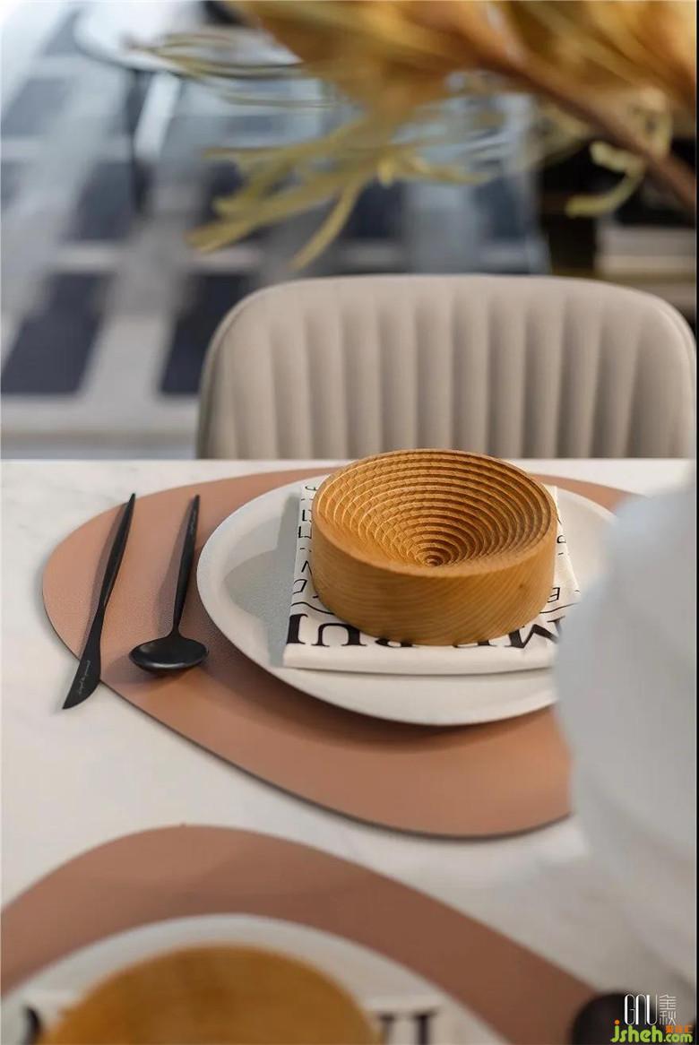 品質的追求不在于大肆顯擺,恰恰在于細節(jié)的用心。餐桌上造型獨特的陶藝泄露個性的棱角,與餐具的獨特形狀組成別具一格的線條,在細節(jié)處突出色調的融洽。