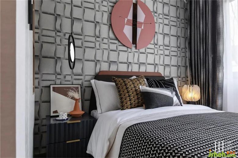 和諧是設計的至臻追求。床上靠墊隨處可見的棱角被墻面柔和的波浪線包容,剛柔并濟,演繹空間設計的靜妙和諧。