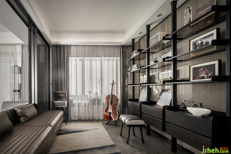 這是一個百變空間,既能成全居者的個性興趣愛好,又能作為臨時的客房使用,樣板房設(shè)計還能成為客廳的延展,滿足各種社交的需求。音樂相關(guān)元素的鋪陳,勾勒藝術(shù)、高雅的居所意韻,宴請賓客時,這里可以成為氣氛的最佳催化劑,并與客廳形成親密的聯(lián)動。