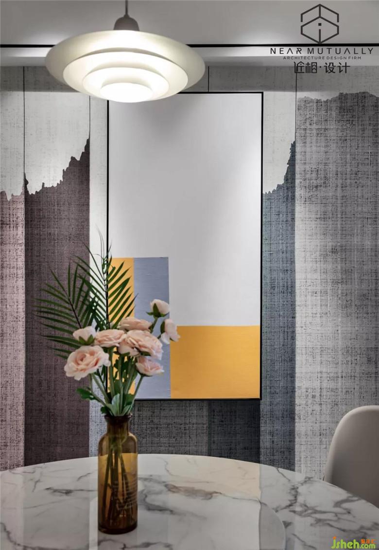 考慮到在家里聚餐的頻率較高,此區(qū)域又是方正的空間,就放置了圓形餐桌,也比較適合中式就餐。