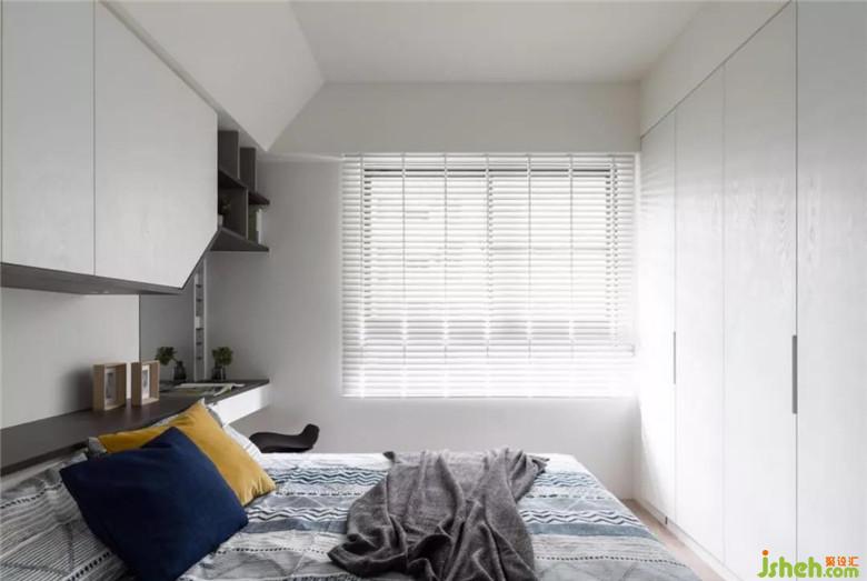 主臥室是主人的休息空間,簡潔的黑白色柜子作為床頭背景,不對等的線條拉伸視覺效果,柔和的色調(diào)讓在空間中無限遐想。裝修公司
