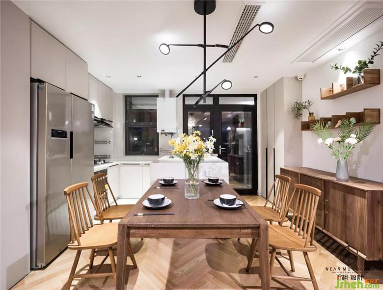 增加島臺(tái)餐臺(tái),使餐廳廚房一體化,讓空間使用得以物盡其用.