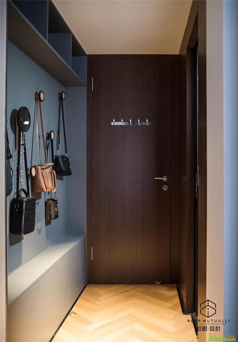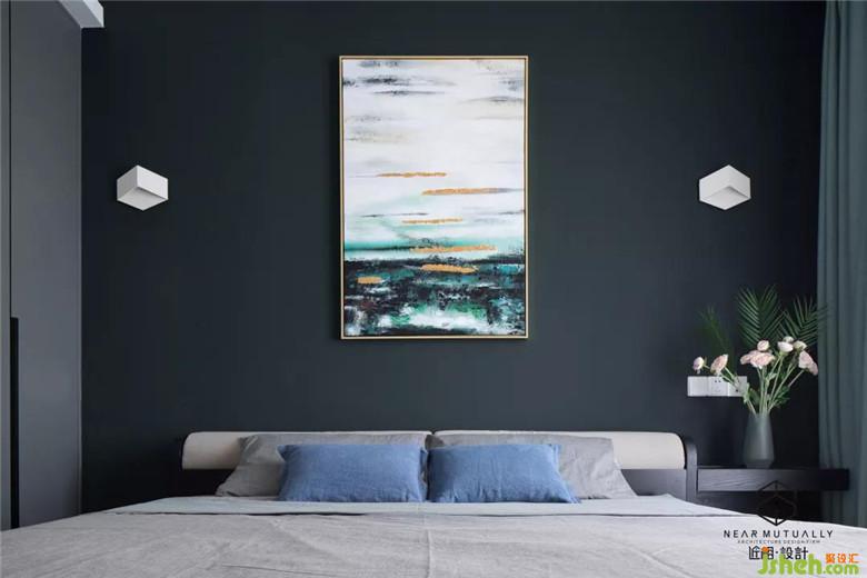 主臥墻面處裝修公司設(shè)計了跳色的藝術(shù)掛鉤