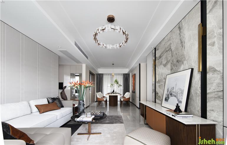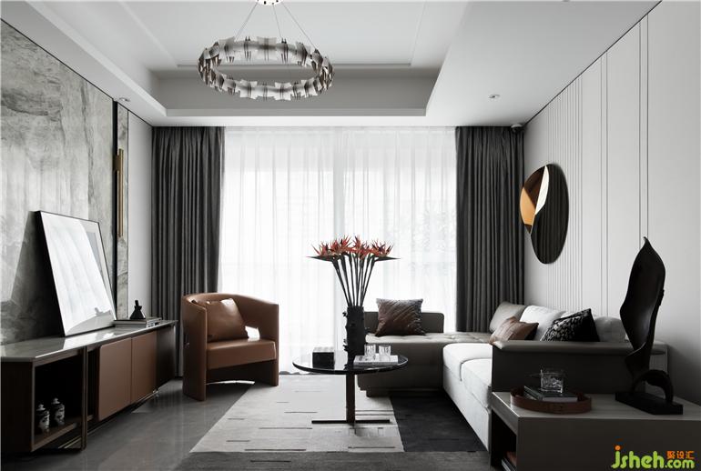 樣板房設(shè)計(jì)全屋空間以棉麻布藝、皮革、金屬增添空間的層次感,局部配以融于時(shí)尚的人文藝術(shù)品,不同材質(zhì)與質(zhì)感的融合,營(yíng)造出室內(nèi)的高級(jí)精品與藝術(shù)感,空間使用橙色系加上高級(jí)灰咖,使空間呈現(xiàn)出現(xiàn)代時(shí)尚高雅低奢的格調(diào)。