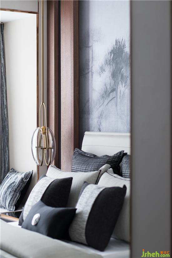樣板房設(shè)計(jì)師對(duì)詩歌意境進(jìn)行提煉、抽象、變形簡(jiǎn)化,將世家子弟的儒雅底蘊(yùn)與富有張力的現(xiàn)代浪漫結(jié)合,高貴的氣質(zhì)在高級(jí)灰與暖人的棕色結(jié)合的剎那占領(lǐng)整個(gè)空間,出于對(duì)傳統(tǒng)文化內(nèi)蘊(yùn)的理解和傳承文脈的高遠(yuǎn)信念,在吊燈溫潤的質(zhì)感與盈透的色澤中,閃耀著粼粼波光。
