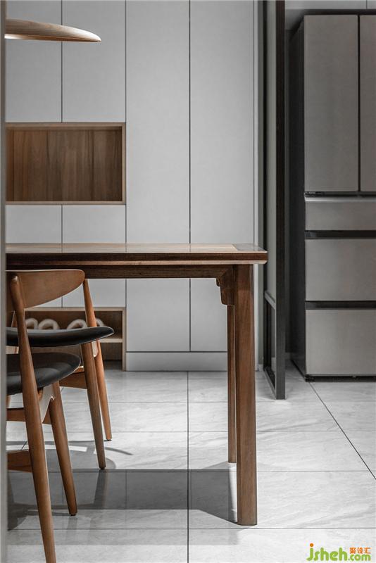 餐椅選自Norhor的經(jīng)典胡桃款,搭配深胡桃餐桌和的木修遠(yuǎn)家的花語無聲雙頭餐燈,美貌和實力并存。