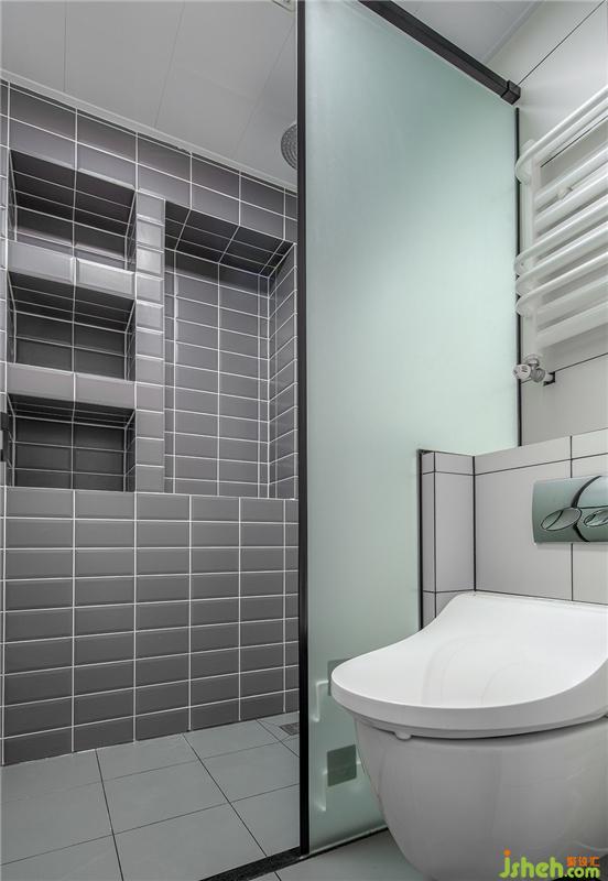淋浴房是第二段空間,功能基本滿足三分離的使用。規(guī)則的面包磚整齊對角,里面的壁龕承擔(dān)收納沐浴用品的責(zé)任,實(shí)用其實(shí)比裝飾性更大。