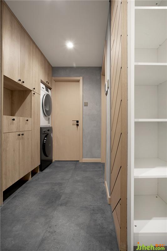 入戶的鞋帽柜設(shè)計成了兩部分,左邊的放鞋子,右側(cè)的掛衣物,洗衣機完美的嵌入,大家應(yīng)該也發(fā)現(xiàn)了還缺個換鞋凳,對的,它還在來的路上,買的比較晚沒趕上我們的拍攝。
