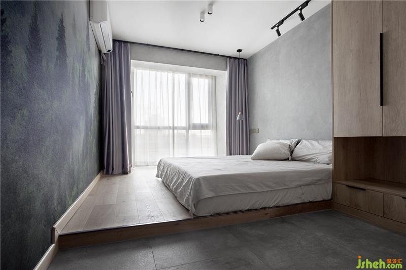 床正對面設計了一面森林壁畫,加大了屋里的視覺感,同樣也提升了整體氛圍,大自然的魅力是永不過時的。