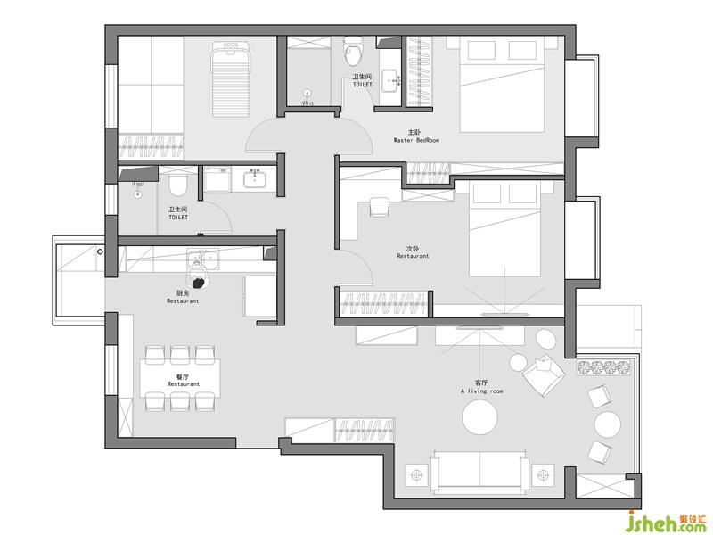 客廳選擇了轉(zhuǎn)角沙發(fā),特別是在這個空間里尤為合適,完美的有效利用客廳和過道產(chǎn)生的死角??臻g利用率提高是一方面,重要的是舒適度的提升。
