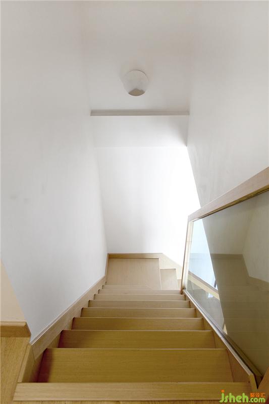 樓梯靠墻位置安裝了照明燈,以免夜晚上下樓臺階踩空,減少安全隱患。臺階與扶手間用透明玻璃來銜接,使光線不受遮擋也能增加樓梯的穩(wěn)定性。