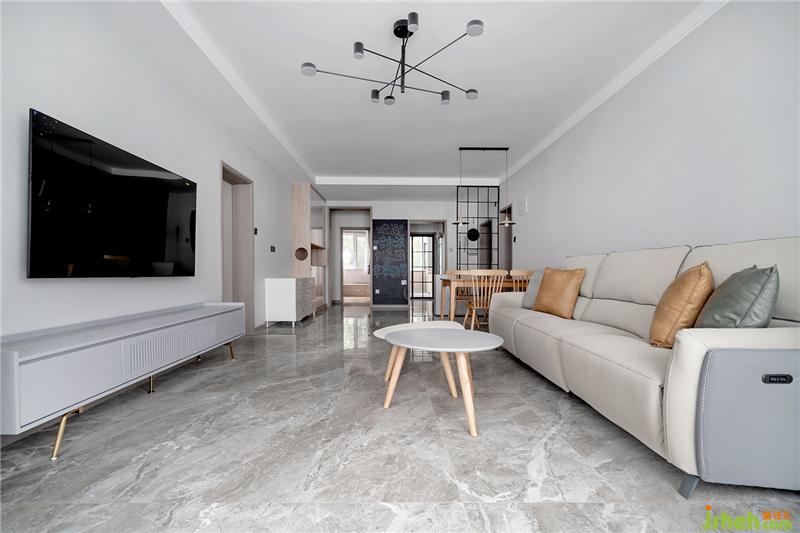 客廳區(qū)域灰色地磚飾面墻面顏色立邦漆(太空漫步),窗簾布藝為抹茶綠,客廳沙發(fā)芝華士頭等艙材質(zhì)為(科技布)防止貓咪抓撓,整體沒(méi)有太多的裝飾。