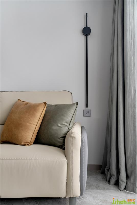 沙發(fā)旁邊的長(zhǎng)條形壁燈,在夜晚觀看電視不需要開(kāi)主燈照明時(shí),可以打開(kāi)做為輔助照明使用,以及氛圍燈使用。