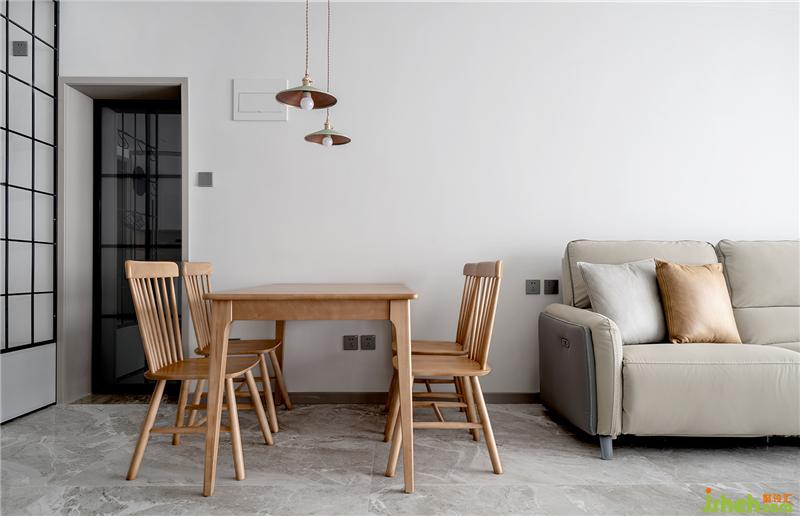 木色的餐桌餐椅給予自然的感覺(jué)。