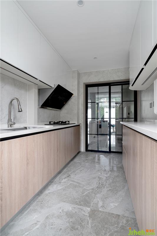 廚房的雙一字型櫥柜,洗切配炒集中在同一側(cè),且臺(tái)面高度也是根據(jù)屋主的身高定制的,更能滿(mǎn)足個(gè)人的使用習(xí)慣。