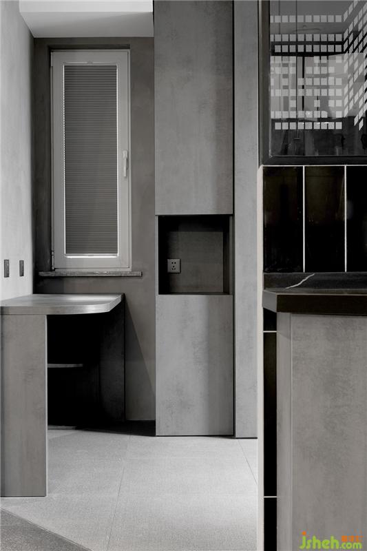 藏在角落的書桌可借助邊側(cè)小窗照射進來的自然光進行工作與閱讀。將臺面邊角弧形加工處理避免磕碰。