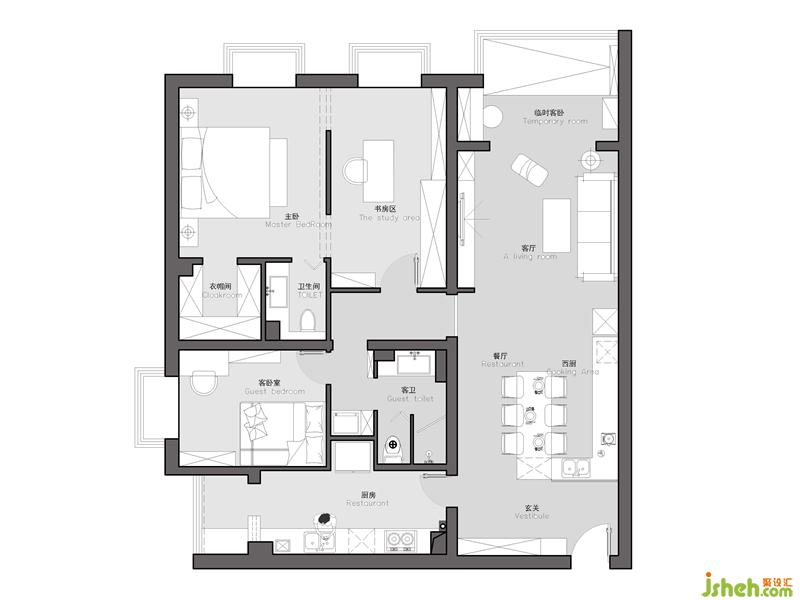 4.業(yè)主希望有儲物間與書房,需要合理改動室內(nèi)墻體實現(xiàn)功能。