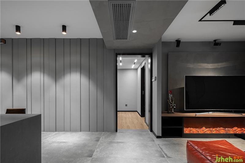 電視背景墻,實現(xiàn)了內(nèi)嵌線性燈帶照明,將現(xiàn)代風運用到淋漓盡致。