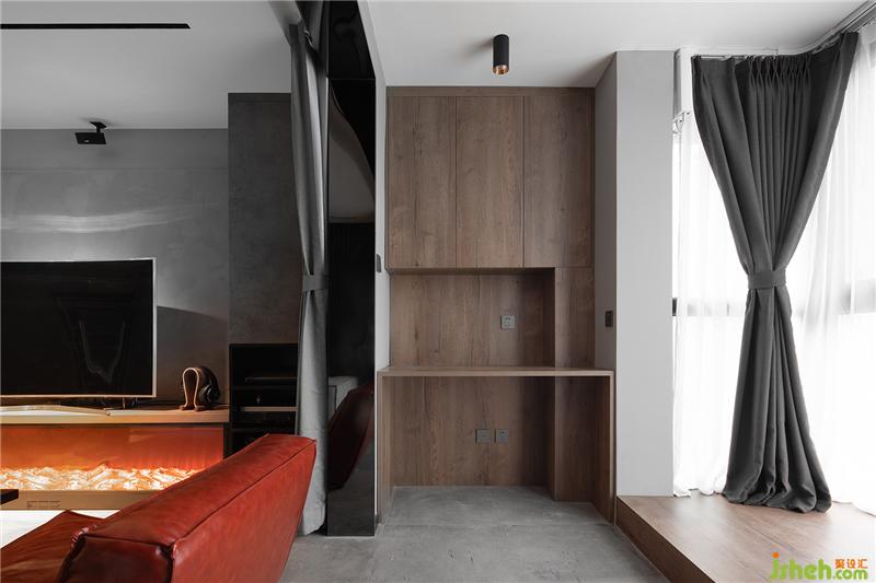 客廳陽臺利用墻的間隙設(shè)計一處臨時辦公區(qū)域,合理利用每一寸空間。陽臺地面定制與窗高相同高度的地臺,使空間更有層次感。