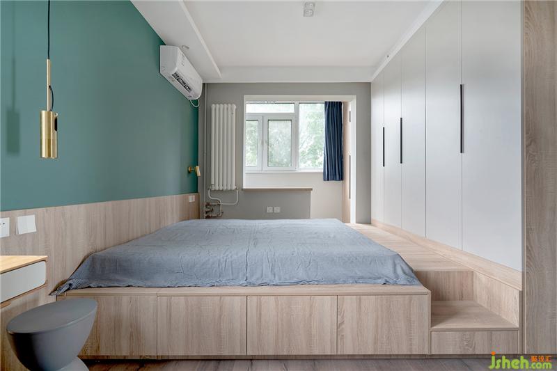 主臥定制了榻榻米地臺床,與衣柜相銜接,擁有海量的收納空間,完全解決了整屋的儲物問題。柜體選用隱藏拉手設(shè)計(jì),由上拉和抽屜式開啟,使其更加整體。