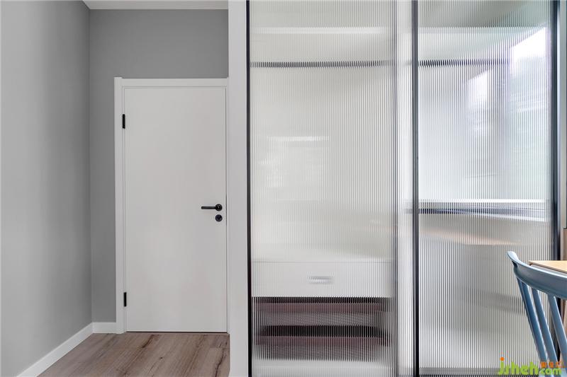 臥室房門選用最簡單的款式,沒有多余的圖案裝飾,簡單卻也很精致。搭配透過衣柜玻璃反射出的光影,線條感十足。