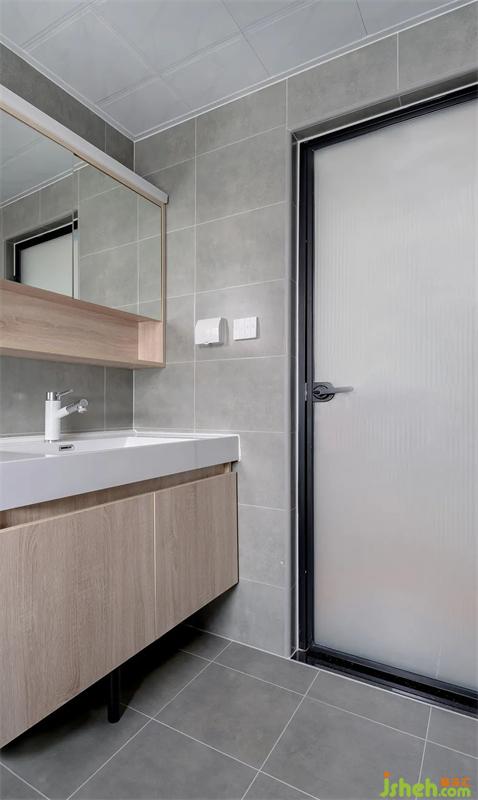 衛(wèi)生間整體干凈整潔,鏡柜下面鏤空方便放置小件物品。