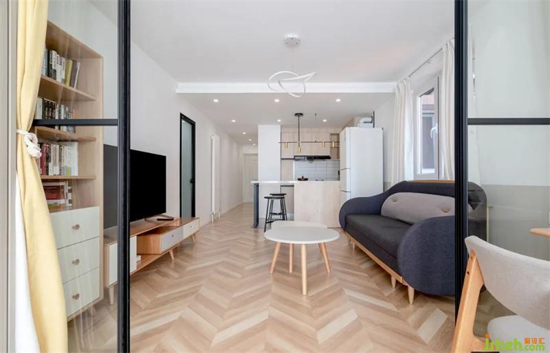 3.客廳區(qū)將原有的墻體拆除做了玻璃移門,從視覺上擴(kuò)大整個(gè)廳的延伸感。玻璃移門分割后,做了第二個(gè)活動(dòng)臥室,平時(shí)當(dāng)做書房使用,父母過(guò)來(lái)后可以兼顧臥房。
