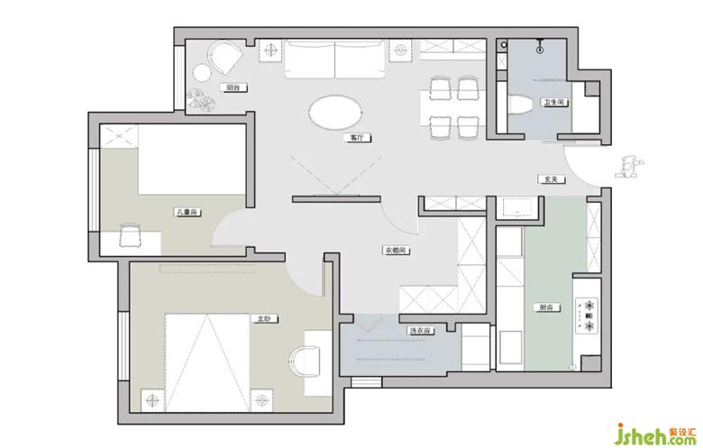 1.衛(wèi)生間增加小型浴缸,把洗手池獨(dú)立出來,實(shí)現(xiàn)衛(wèi)生間的干濕分離。