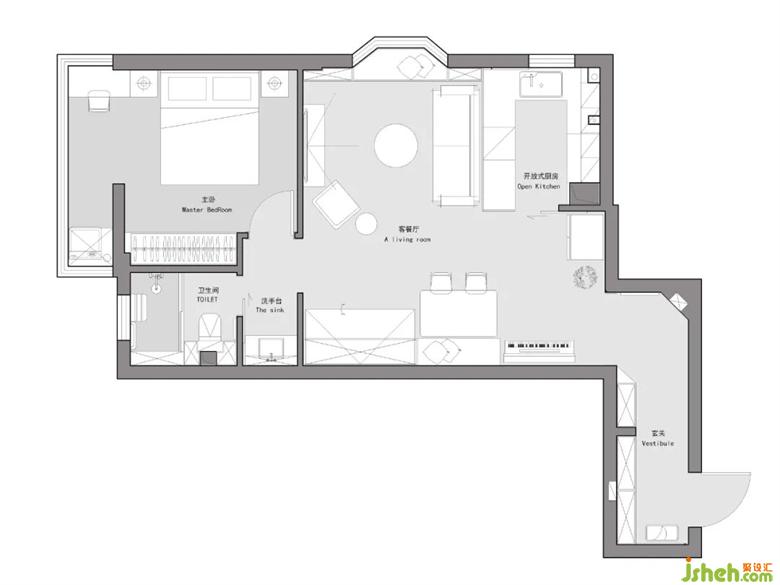 1.充分利用入戶過道的空間,把鞋帽柜都在這里解決。其實原本入戶門不在這里,位于過道中間,但是因為就一戶的關(guān)系,把門往外拓開了一部分,這樣擴(kuò)大了很多空間。