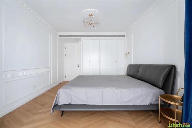 深灰色的皮質(zhì)床頭沉穩(wěn)大氣,一側(cè)的衣柜保證了日常裝修的儲(chǔ)物需求。