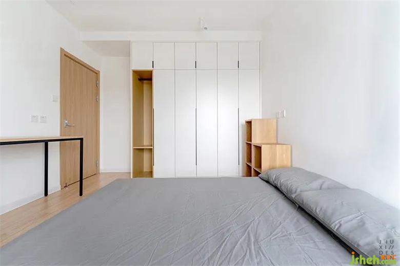 主臥衣柜最左邊的開放格,預(yù)留夜晚休息放衣物的空間裝修設(shè)計。右邊都是通頂?shù)囊鹿?,柜體上面預(yù)留了10公分的平面吊頂,這樣柜體通頂后沒有大的縫隙,收口也好處理。