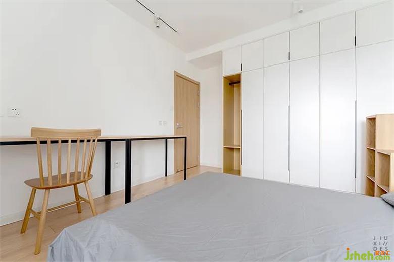 床尾是辦公區(qū),平時 屋主周末在家工作的時間比較多,設(shè)置在主臥就不會打擾到老裝修設(shè)計人的休息。