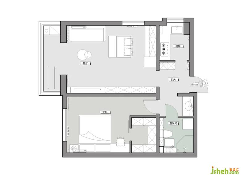 2.衛(wèi)生間洗手池外置,實(shí)現(xiàn)干濕分離,增加衛(wèi)生間利用率。