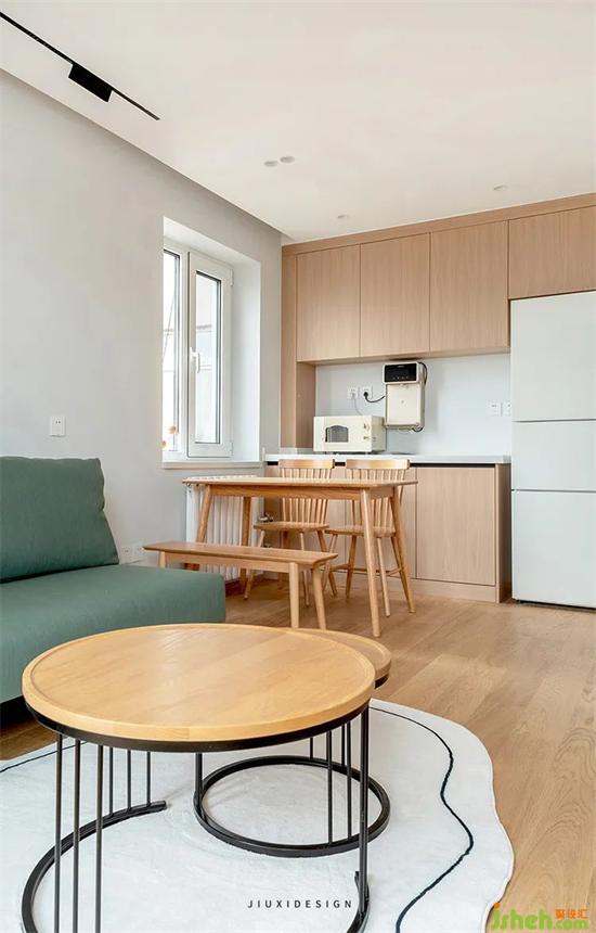 廚房整體以原木和灰色磚為主,干凈整潔。室內(nèi)設(shè)計(jì)師為了達(dá)到整體結(jié)室內(nèi)設(shè)計(jì)師構(gòu)統(tǒng)一,下水也用板式家具包覆隱藏,同時(shí)預(yù)留了可以開啟的檢修口,將細(xì)節(jié)感拉滿。