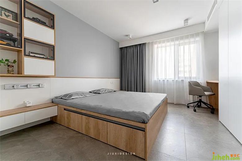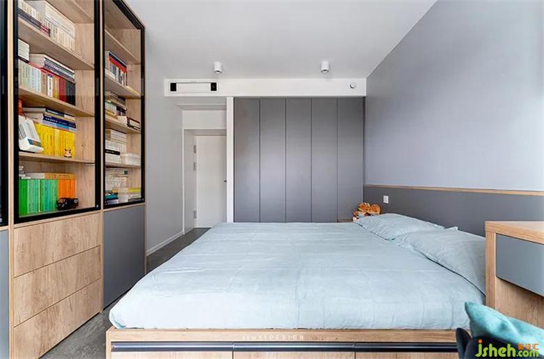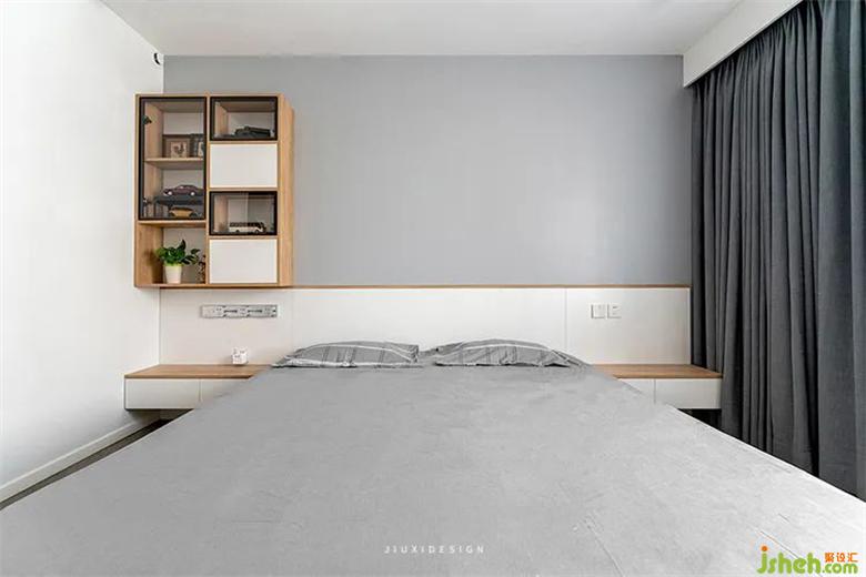 臥室以舒壓和助眠為主,在淺灰色的墻面背景下,用中灰與木色營(yíng)造出空間的調(diào)性,簡(jiǎn)約,清雅。室內(nèi)設(shè)計(jì)不會(huì)有任何的視覺刺激。讓一天的疲憊漸漸舒緩下來。