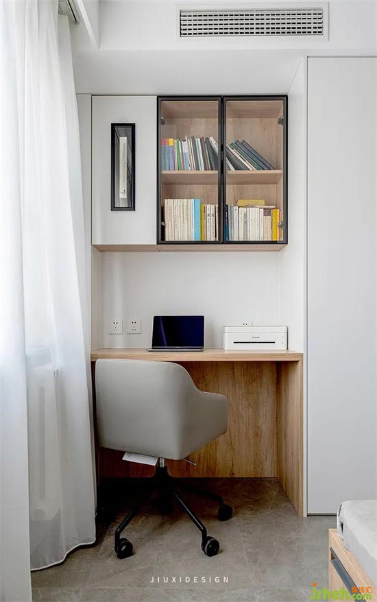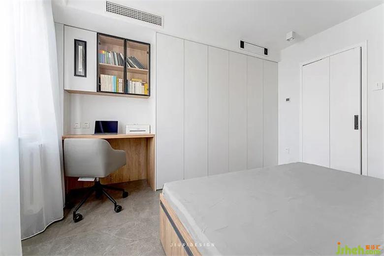 次臥區(qū)域除了睡眠區(qū),衣柜收納,也預留了書桌空間,方便各自的學習閱讀和網(wǎng)課。室內設計在這里安安靜靜 ,循循善誘,誨人不倦,播撒知識種子。