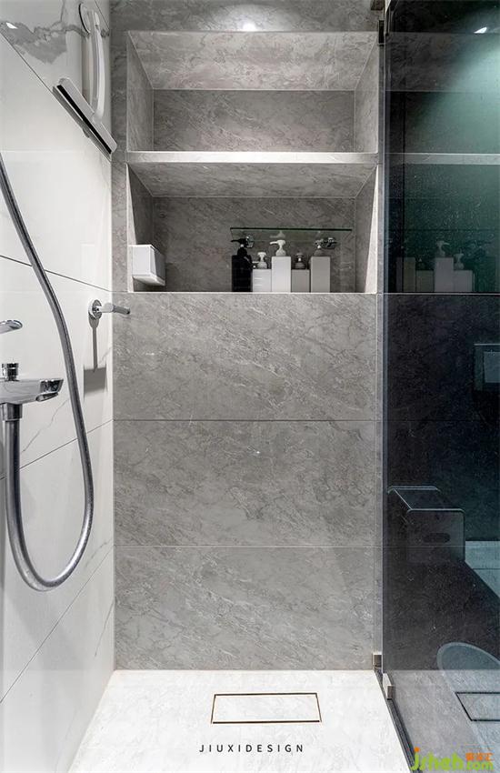 整個淋浴房里,依據(jù)實際需求,預留出足夠的壁龕。作為淋浴區(qū)的收納空間,為生活提供無限便利。