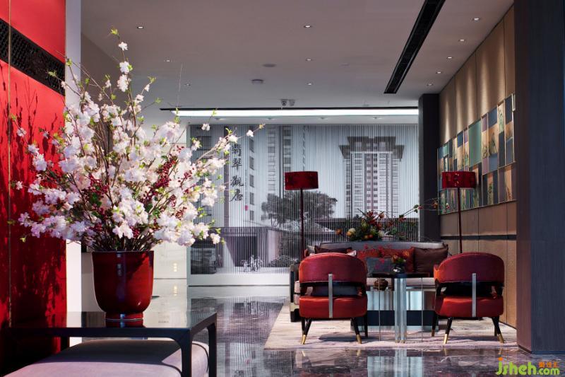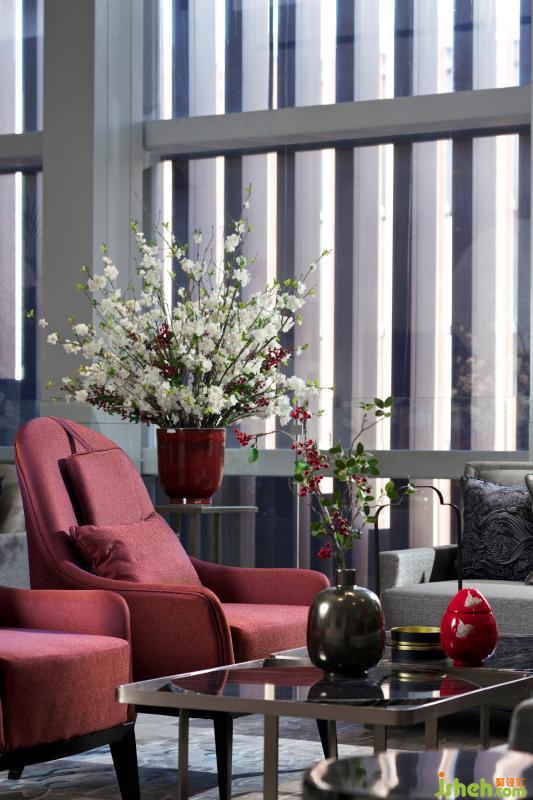 設計以結(jié)合唐山絲綢之路及唐朝貴族團扇文化為設計元素,設計的紅色吊飾,表達出吉祥貴族氣質(zhì)。陽光透過玻璃窗,讓光線在空間里若有似無的流動,虛實相間里給予洽談者一種全新的感官體驗。掛飾上的肌理為視覺與觸覺帶來記憶,也為觀者帶來遐想:亦或朝暉,亦或晚霞。設計公司