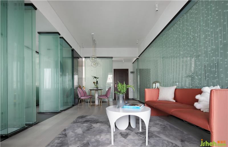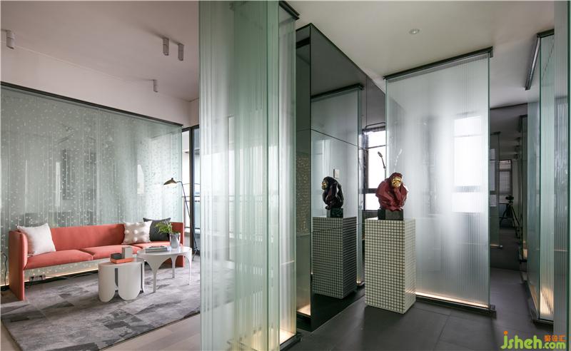 設(shè)計師完全摒棄實墻來分割空間,采用玻璃的塊面完全通透處理,分別劃分出臥室、書房及工作間各區(qū)域。在空間界面構(gòu)成中,我們通過塊面與線條的塑造打造一種使空間“空靈”的張力?!白鰷p法,不炫技,簡簡單單,干干凈凈”是設(shè)計師對項目設(shè)計的把握——不考慮奢華的裝飾性,只通過軟裝對業(yè)主生活品位及時尚喜好,作清簡的表達(dá)。用純粹的建筑語言使空間變得空靈簡致,游走之中讓人心曠神怡。
