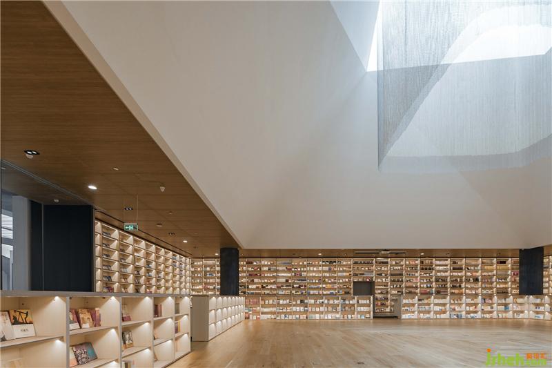 透明天窗是本區(qū)域的設(shè)計(jì)亮點(diǎn),利用自然天光渲染靜謐的環(huán)境色調(diào),將阿房宮賦中的華美殿堂淬煉為當(dāng)代的極簡(jiǎn)線條,勾勒出讀者們沉心讀書(shū)的理想之地。書(shū)城設(shè)計(jì)